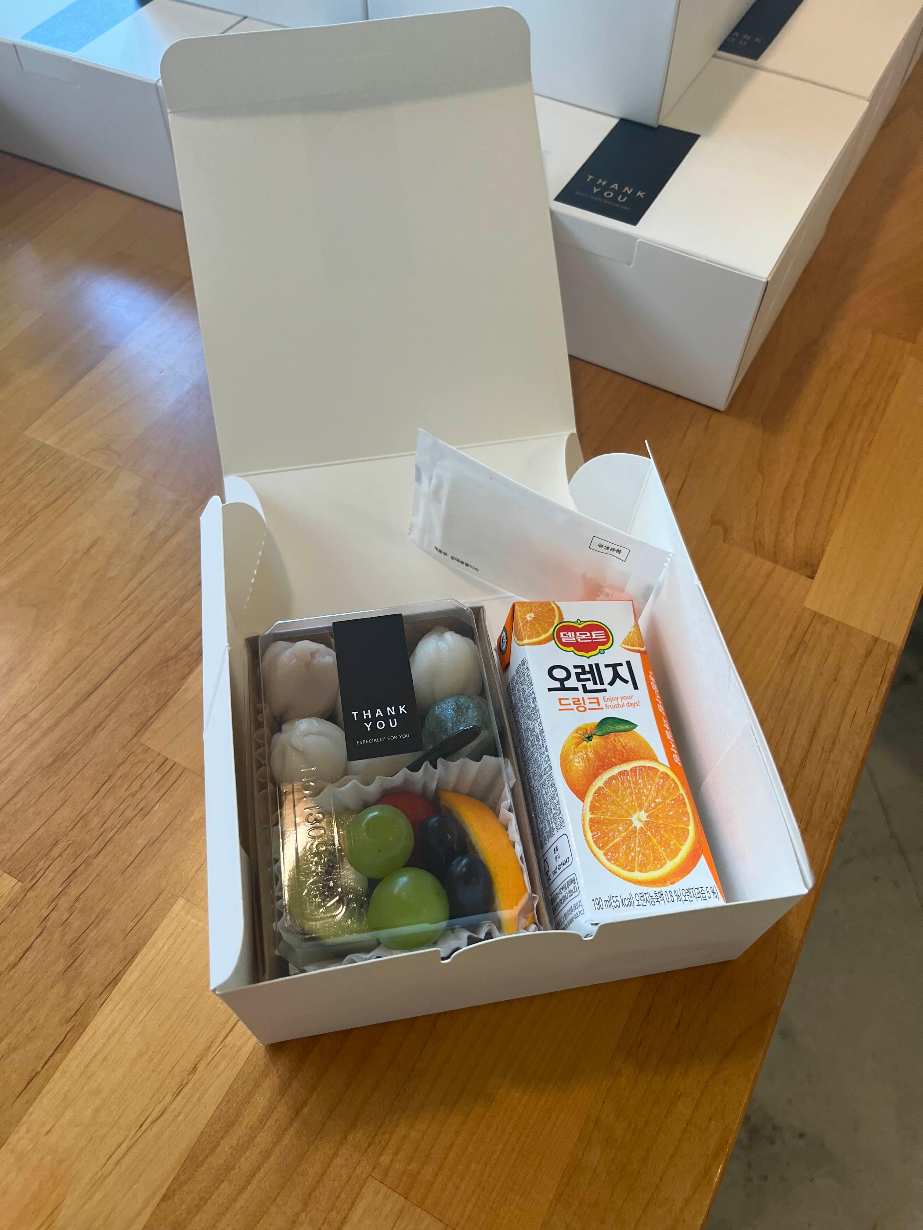 생수,물티슈,개별포장박스 구성으로 간식도시락이